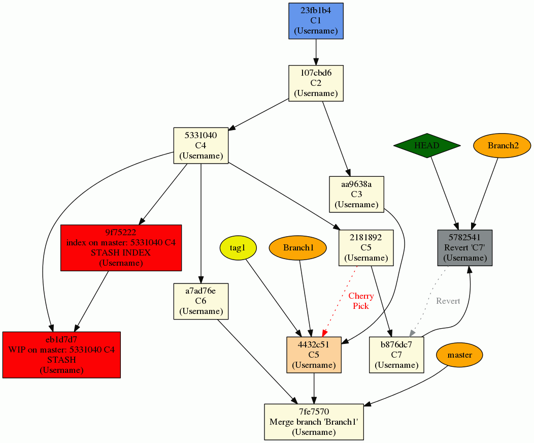 Tool to create a graph from a git history showing tags, branches, stash nodes, cherry-picks.